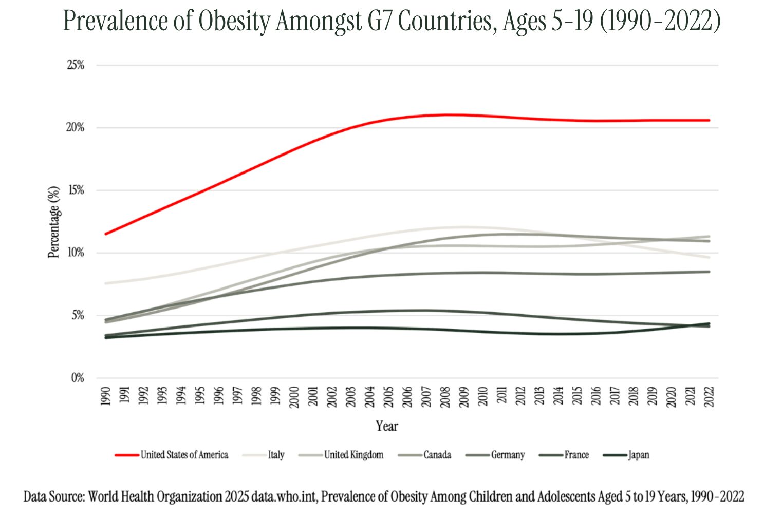 - The US obesity rate is on average more than double that of its G7 peers.