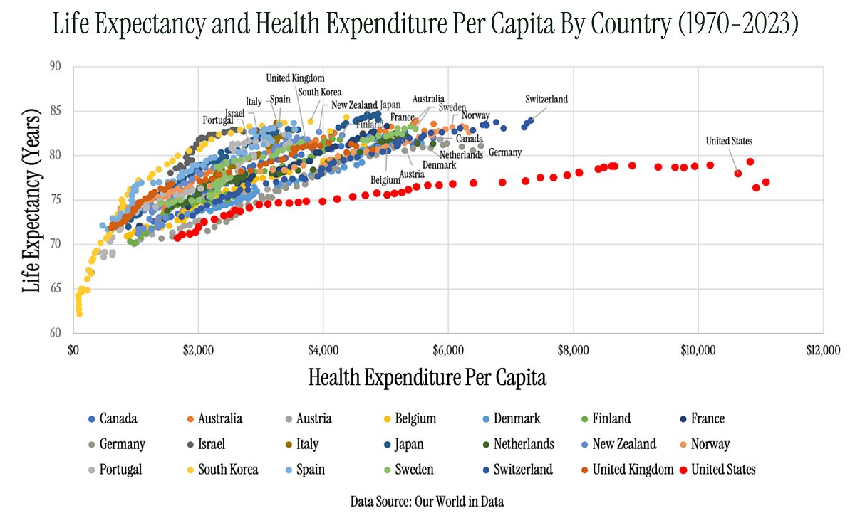 - Despite significantly outspending peers on healthcare, the US ranks last in life expectancy among high income countries.